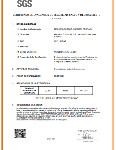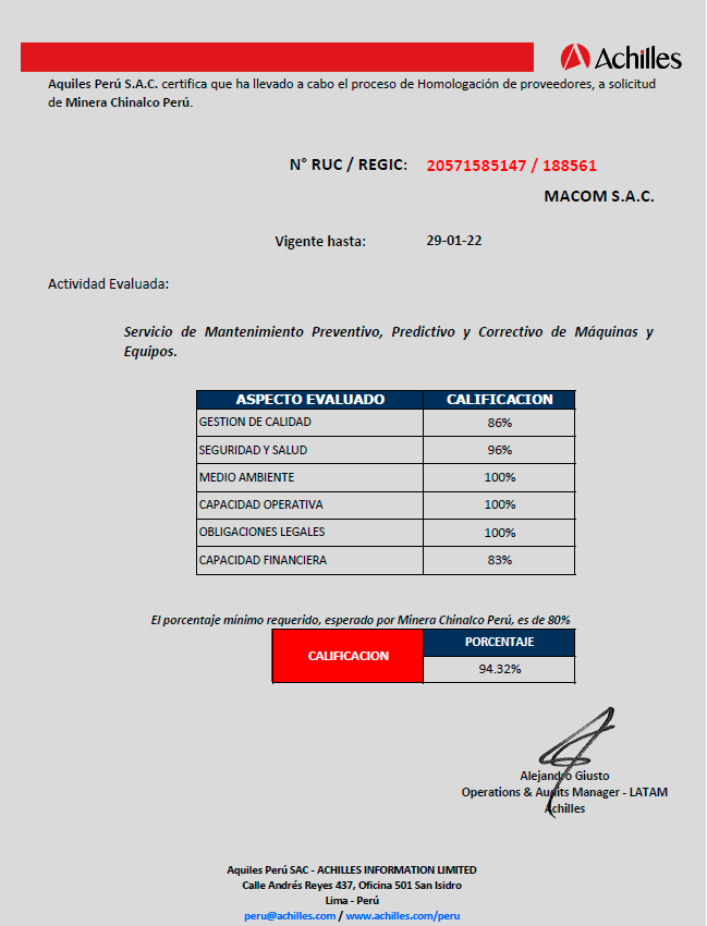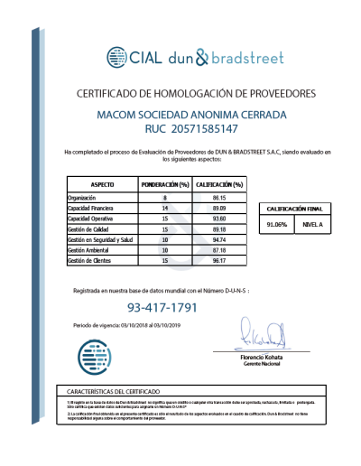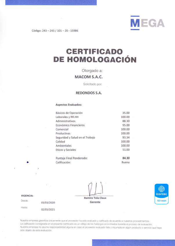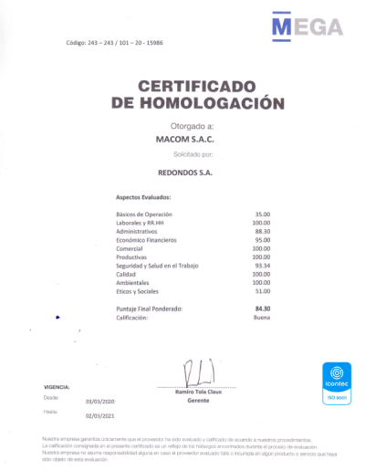 Desde sus inicios Macom ha venido llevando a cabo procesos de homologación de proveedores, en el cual se nos ha evaluado en los aspectos de seguridad industrial, medio ambiente, calidad, finanzas...