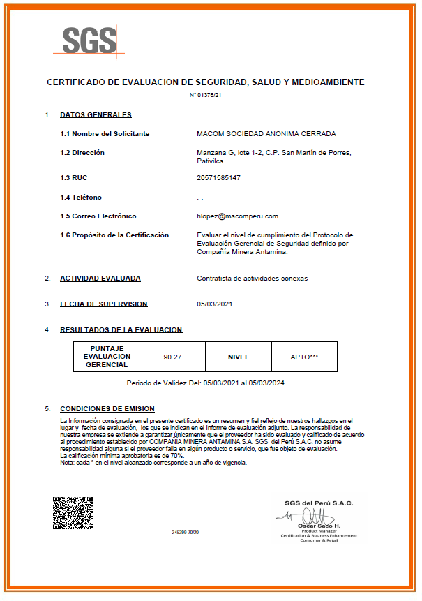 MACOM ha crecido con el transcurso de los años conjuntamente con sus clientes, socios estratégicos, proveedores exclusivos y su capital humano, estas relaciones duraderas han permitido, que al día de hoy, nos encontremos rumbo a la excelencia operativa, y lo demostramos con nuestro compromiso en seguridad, salud ocupacional y medio ambiente; con el uso de las mejores prácticas operacionales garantizando servicios de calidad, con personal especializado que comprende la importancia de la responsabilidad social.